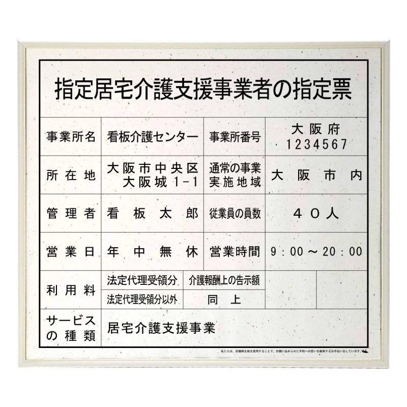 指定居宅介護支援事業者の指定票スタンダードおりひめ