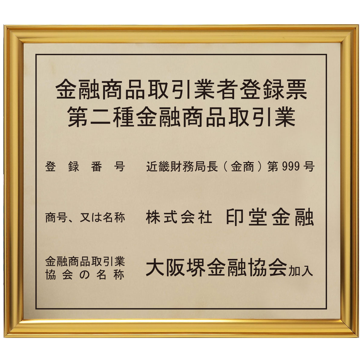金融商品取引業者登録票真鍮(C2801)製プレミアムゴールド
